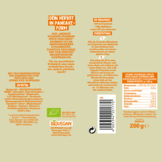 Herbstlicher Genuss auf dem Teller mit unseren Pumpkin Spice Pancakes. Die Backmischung zaubert im Handumdrehen goldbraune, fluffige Pancakes mit fein abgestimmter Pumpkin-Spice-Note. Einfach 270 ml Sojadrink, 140 g Apfelmus und etwas Öl hinzufügen – fertig ist der perfekte Snack oder ein gemütliches Frühstück für kalte Herbsttage.