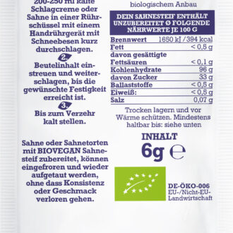 Inhalt: 3 x 6 g (für 3 x 200-250 ml aufschlagbare Pflanzencreme oder Sahne)