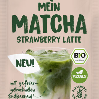 Mein Matcha Strawberry Latte vereint klassischen Matcha mit der natürlichen Süße gefriergetrockneter Erdbeeren. Perfekt für sommerliche Drinks – einfach in Milch oder Pflanzendrink einrühren, Eiswürfel dazu, fertig!